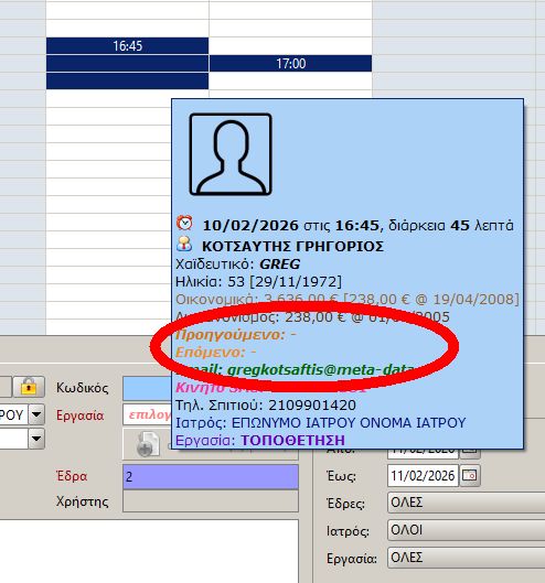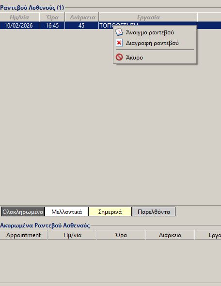 διορθώσεις σφαλμάτων στα ραντεβού ιατρείου.